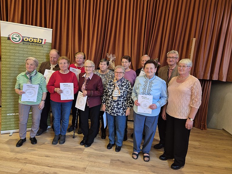 Bei der Jahreshauptversammlung am 5. März 2024 waren 70 Mitglieder anwesend. Als Ehrengäste konnte Obmann Alois Gangl Bez. Obmann Straßl, Vizebgm. Josef Gattermann, JVP-Obmann Franz Holzapfel und Ehrenobfrau Aloisia Hechinger begrüßen. Nach dem Totengedenken und den Berichten des Kassiers, der Schriftführerin und aller Teammitglieder wurden folgende Personen für ihre langjährige Mitgliedschaft geehrt.